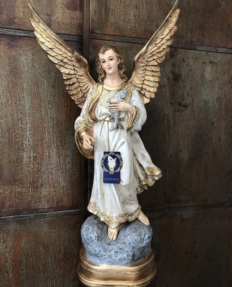 San Rafael Arcángel es conocido en las Sagradas Escrituras por su papel central en el Libro de Tobías, donde se revela como el guía fiel que sana y acompaña. Esta imponente imagen de 75 cm, elaborada en fibra de vidrio de alta calidad, destaca por sus detalles realistas, su ligereza y gran resistencia. El diseño presenta un acabado con tonos cálidos y terrestres, fieles a su representación como el peregrino sanador: la túnica verde, que simboliza la naturaleza, la esperanza y la sanación; y el manto marrón o crema, que representa su camino como caminante y guía en la tierra. Esta paleta de colores confiere a la pieza un carácter cercano y misericordioso, haciendo de ella un tesoro de fe y protección en la adversidad.