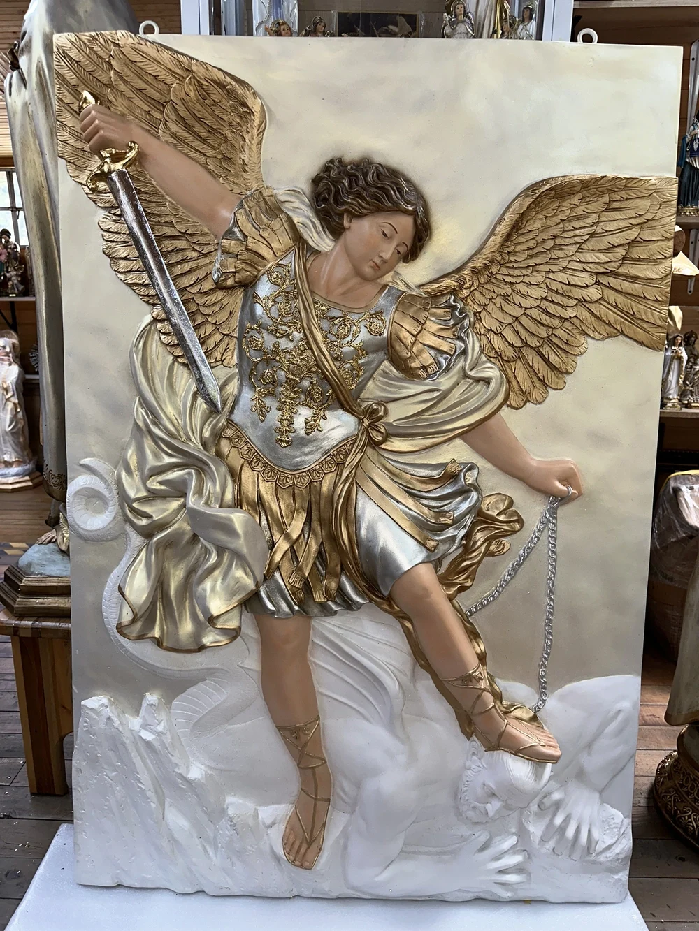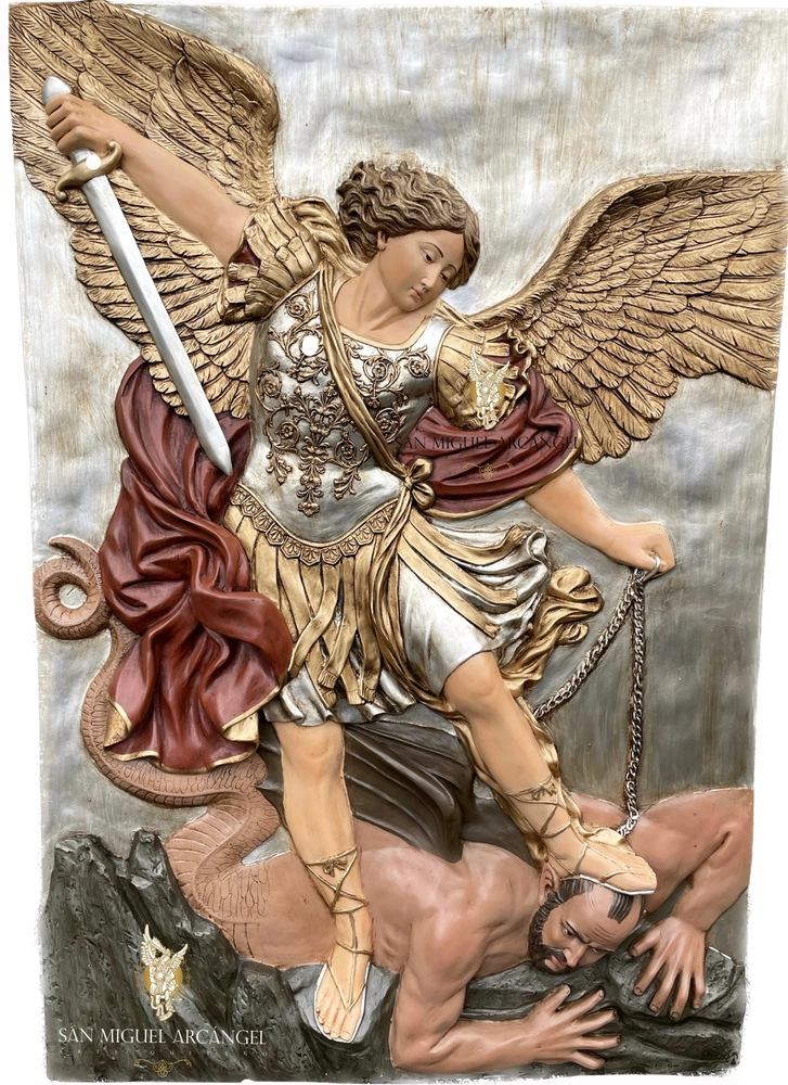 Esta pieza es una obra de arte que evoca la fuerza, la protección y la devoción. Perfecta para presidir el altar mayor o lateral de iglesias, capillas y centros espirituales. Gracias a la fibra de vidrio de alta calidad, el cuadro en relieve es inherentemente resistente y apto para cualquier ubicación, ya sea en salones y altares familiares, o en exteriores como atrios, jardines y grutas. Es también un regalo significativo y perdurable para seres queridos.