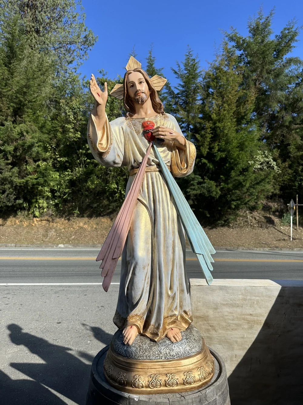 Esta obra de arte es una poderosa declaración de fe y un recordatorio visible de la infinita compasión de Cristo. Perfecta para presidir el dormitorio, el altar familiar o cualquier espacio de oración, sirviendo como centro de confianza y perdón. Gracias a la fibra de vidrio de alta calidad, esta imagen es inherentemente resistente y apta para exteriores como jardines, grutas o terrazas.