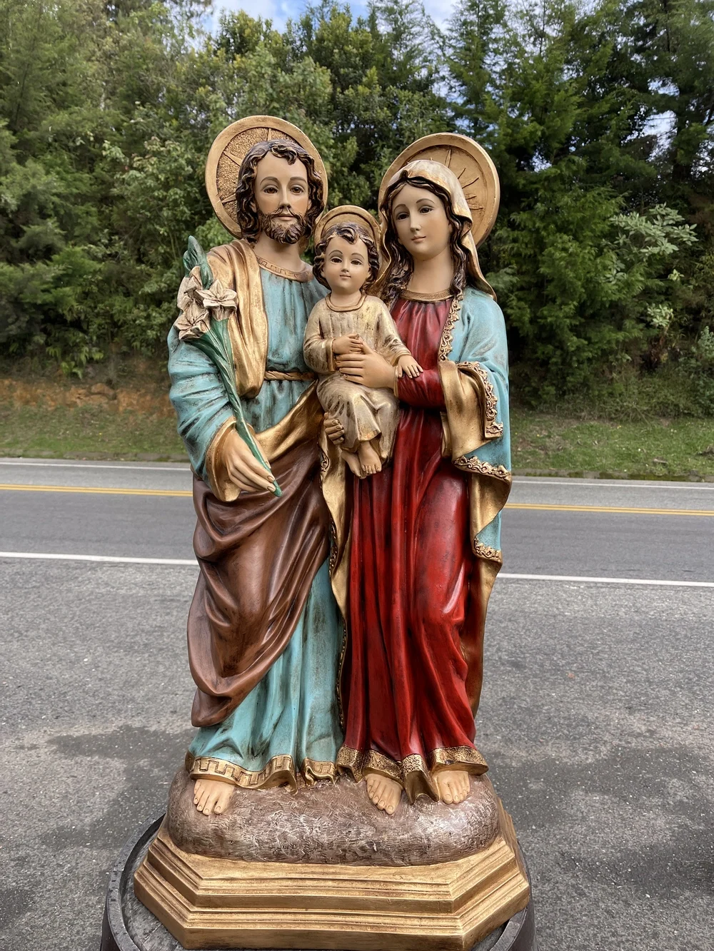 Esta pieza es un magnífico testimonio de fe y un recordatorio constante de los valores fundacionales del hogar. Perfecta para presidir el altar mayor o lateral de iglesias, capillas y centros espirituales. Gracias a la fibra de vidrio de alta calidad, la imagen es inherentemente resistente y apta para cualquier ubicación, ya sea en amplios como salones y altares familiares, o en exteriores como atrios, jardines y grutas.