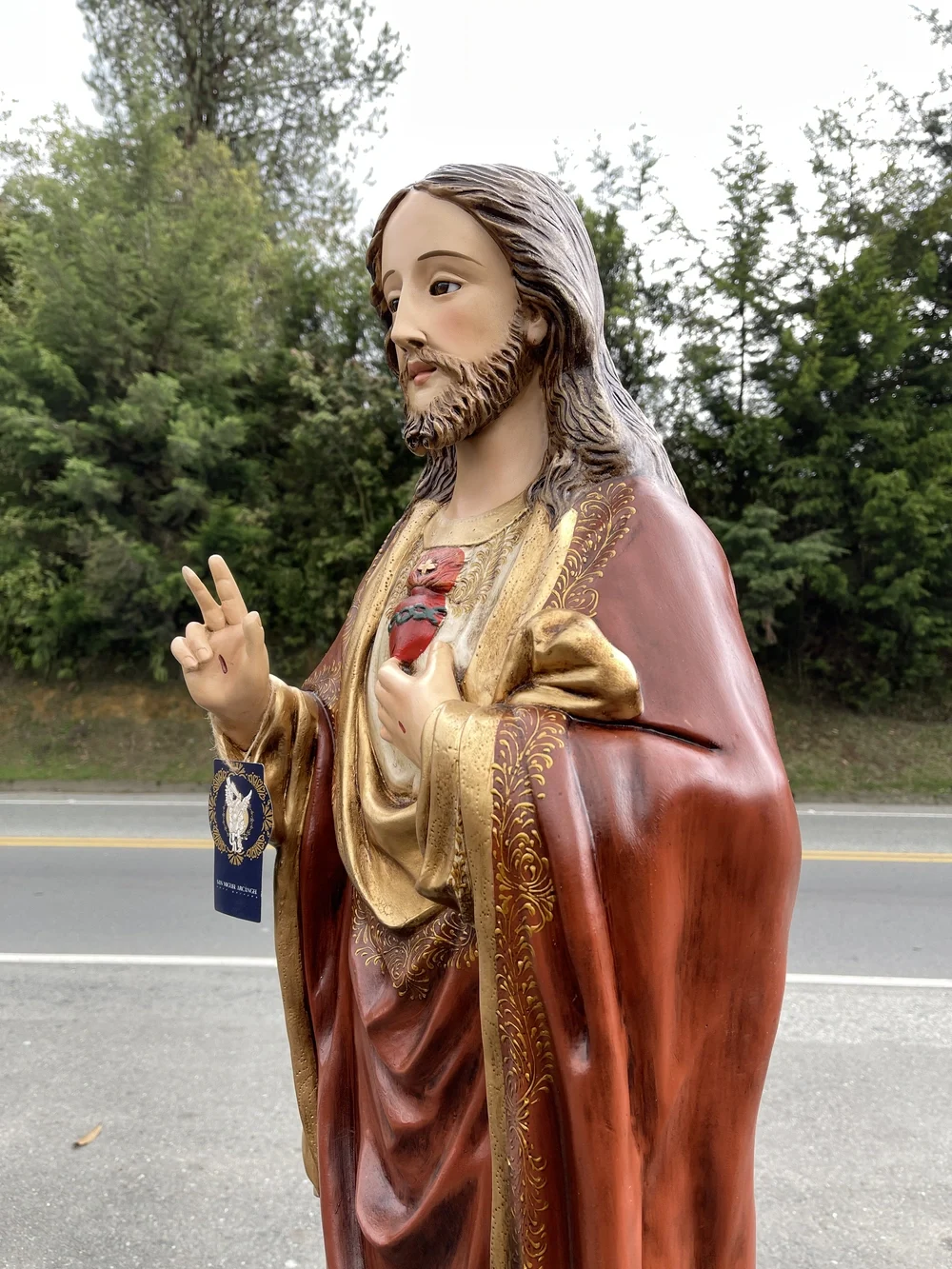Esta obra de arte es una poderosa declaración de fe y un recordatorio visible de la promesa de Su protección y bendición. Perfecta para presidir la sala de estar, el despacho o el altar familiar, sirviendo como centro espiritual del hogar. Gracias a la fibra de vidrio de alta calidad, esta imagen es inherentemente resistente y apta para exteriores como jardines, grutas o terrazas.