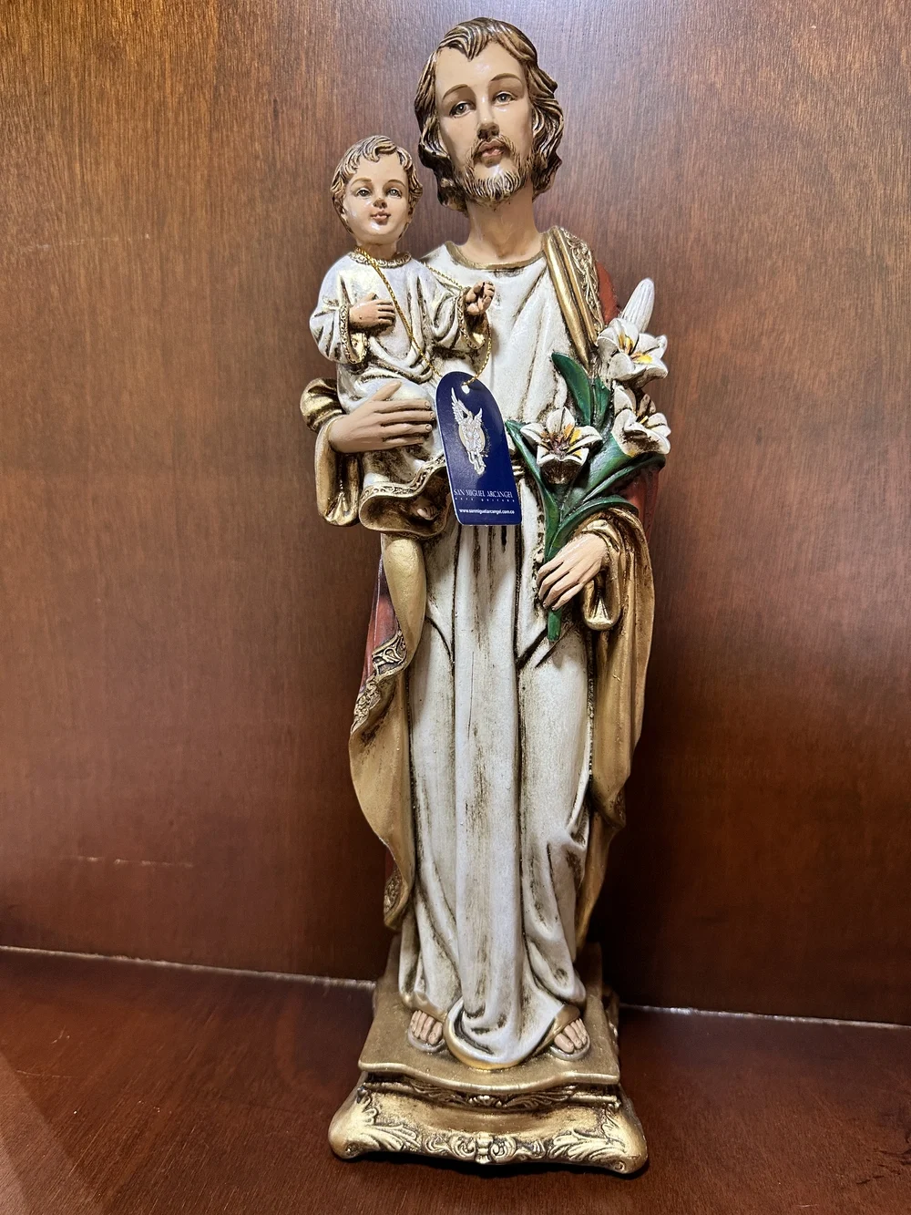 Esta pieza es una obra de arte que evoca la fidelidad, la providencia y la dignidad del trabajo. Perfecta para presidir la oficina o taller, para embellecer un altar familiar, o cualquier rincón de tu hogar donde se desee un constante recordatorio de la necesidad de confiar en la providencia y la protección paternal. Es un regalo sumamente apropiado para padres, cónyuges, o cualquier persona que busque la santificación en su labor diaria.
