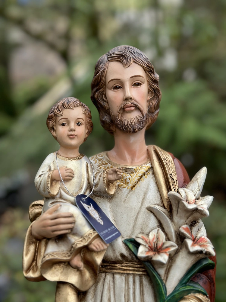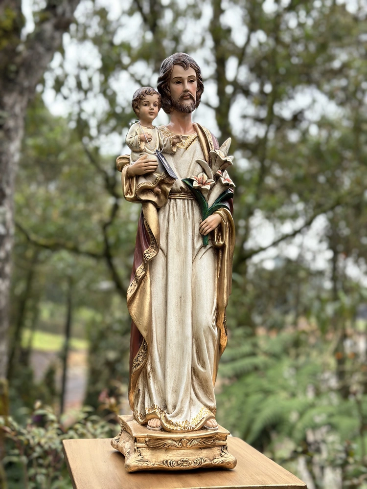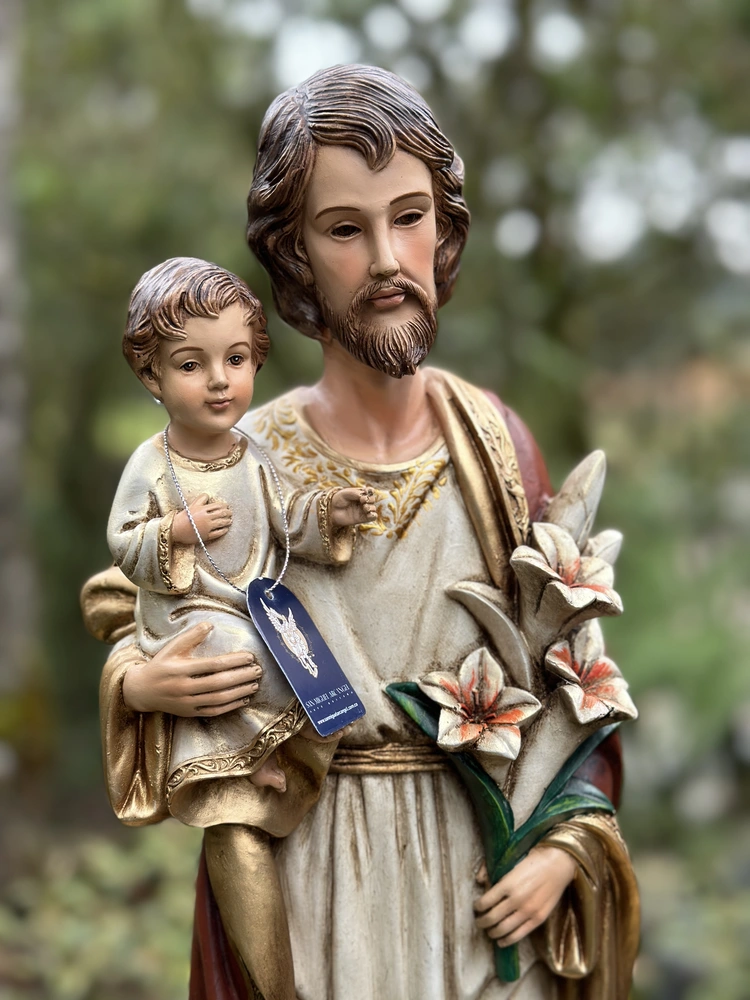 Esta pieza es una obra de arte que evoca la fidelidad, la providencia y la dignidad del trabajo. Perfecta para presidir la oficina o taller, para embellecer un altar familiar, o cualquier rincón de tu hogar donde se desee un constante recordatorio de la necesidad de confiar en la providencia y la protección paternal. Es un regalo sumamente apropiado para padres, cónyuges, o cualquier persona que busque la santificación en su labor diaria.