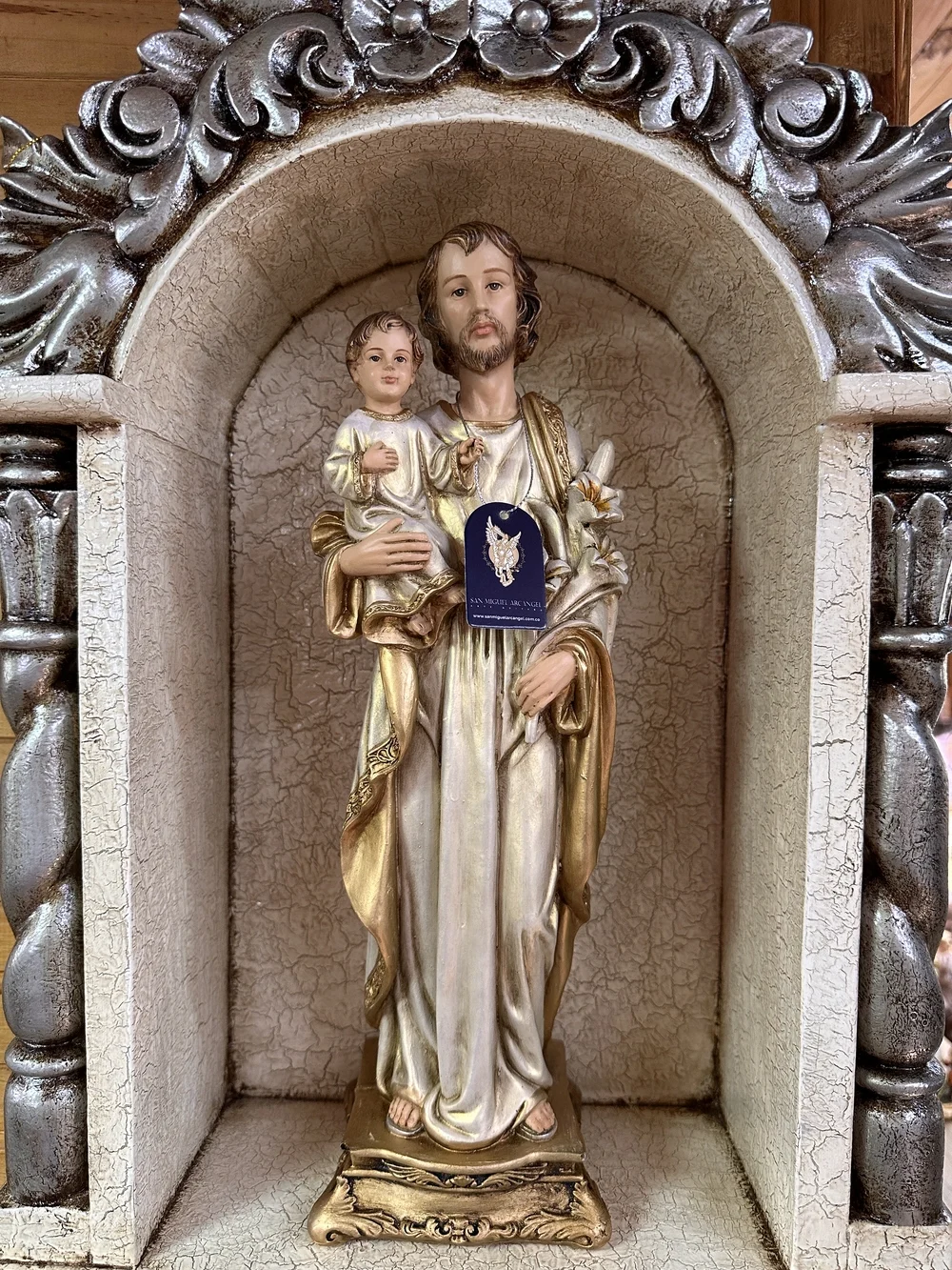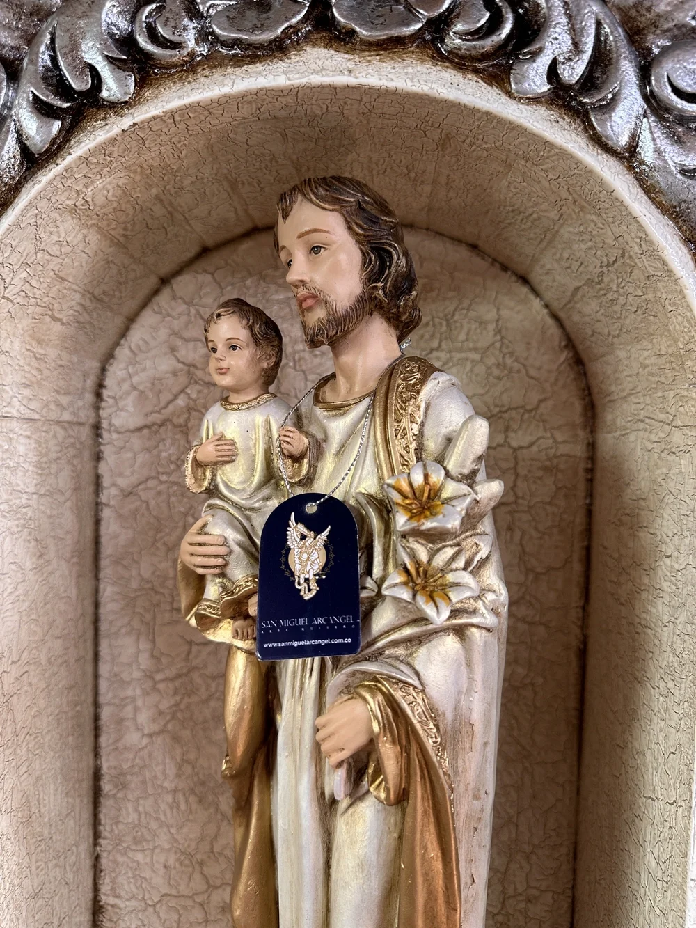 Esta pieza es una obra de arte que evoca la fidelidad, la providencia y la dignidad del trabajo. Perfecta para presidir la oficina o taller, para embellecer un altar familiar, o cualquier rincón de tu hogar donde se desee un constante recordatorio de la necesidad de confiar en la providencia y la protección paternal. Es un regalo sumamente apropiado para padres, cónyuges, o cualquier persona que busque la santificación en su labor diaria.