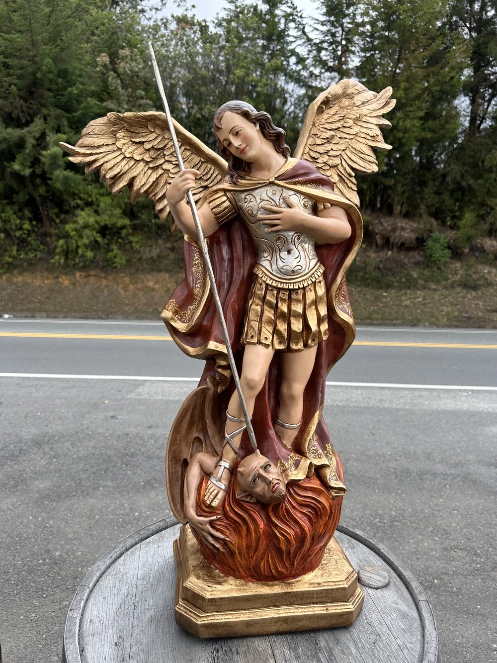 Esta pieza es una obra de arte que evoca la fuerza, la protección y la devoción. Gracias a la fibra de vidrio de alta calidad, la imagen es inherentemente resistente y apta para cualquier ubicación, ya sea en salones y altares familiares, o en exteriores como atrios, jardines y grutas. Es también un regalo significativo y perdurable para seres queridos.