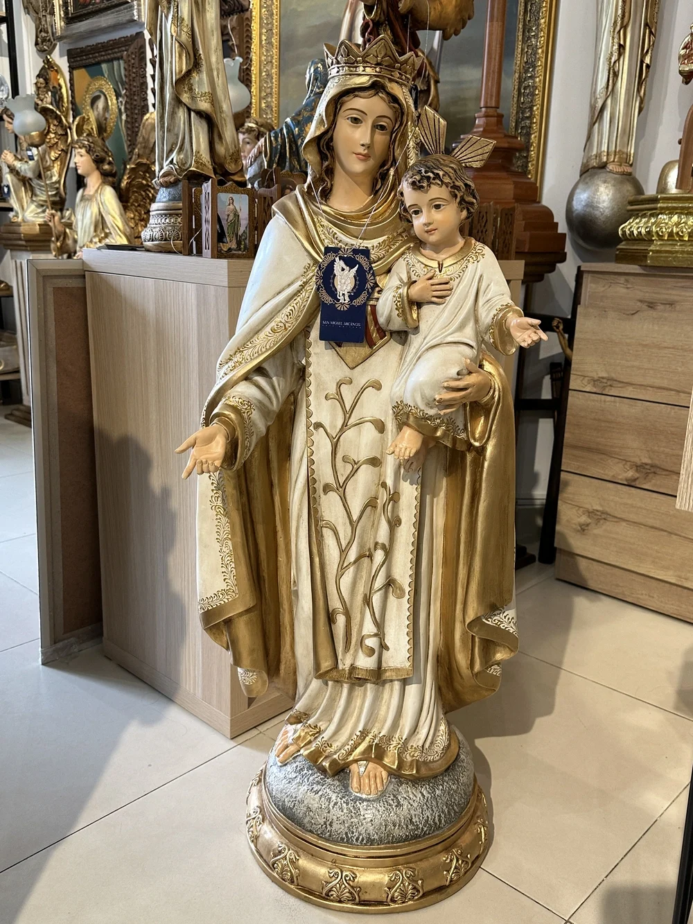 Esta pieza es una obra de arte que evoca la misericordia y el compromiso de la Madre de Dios con la libertad. Perfecta para presidir el altar mayor o lateral de iglesias, capillas y centros espirituales. Gracias a la fibra de vidrio de alta calidad, la imagen es inherentemente resistente y apta para cualquier ubicación, ya sea en salones y altares familiares, o en exteriores como atrios, jardines y grutas.