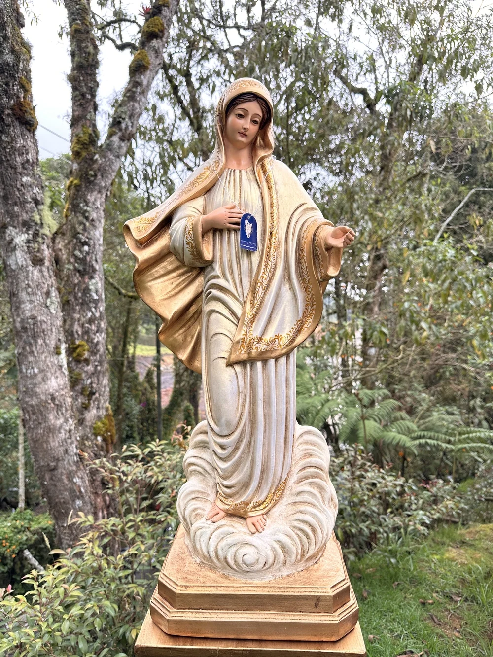 Esta pieza es una obra de arte que evoca sencillez y un profundo mensaje de vida espiritual. Ideal para crear un ambiente de paz y recogimiento en cualquier hogar. Gracias a la durabilidad y ligereza de la fibra de vidrio, es perfecta para ser colocada en altares interiores, nichos de oración o en jardines, donde su presencia inspire a la conversión y la oración constante. Es un símbolo de esperanza en la promesa de la paz.